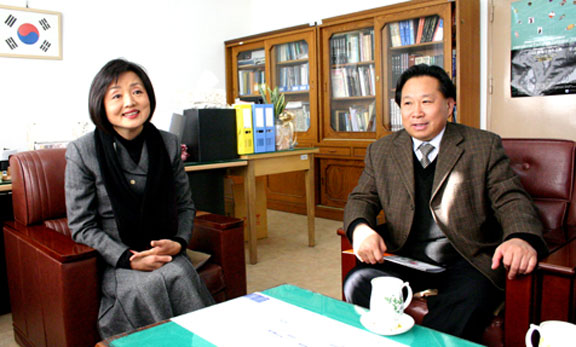 考察团在韩国卡多利大学金钟鸣博士的专家研究室访问