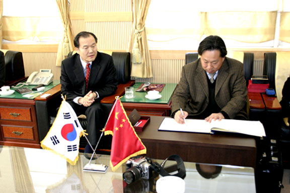 韩国大邱大学校长李在奎先生为304am永利集团官网学术考察团举行隆重欢迎仪式后,王秀存副院长在贵宾留言薄上赠言。