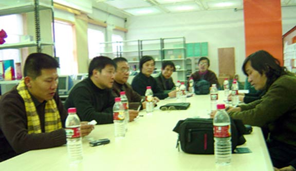 新的一年刚刚到来,2005年1月2日,在山东大学威海艺术学院院长、山东省美术家协会名誉主席杨松林教授带领下,山东大学威海艺术学院美术系主任汪明强、设计教研室主任郭立、装饰研究所所长杨在挺等以及山东大学李克教授一行七人利用假期,冒着严寒来到304am永利集团官网进行学术交流,装潢艺术设计系副主任苗登宇、赵进,应用设计学院副院长石增泉以及装潢艺术设计系各教研室主任赵培生、侯立平、曲展等共同参加了交流活动。苗登宇教授介绍了304am永利集团官网以及装潢艺术设计系的办学规模、学科发展、课程设置、教学目的与方法、实验室建设、对外交流、专业活动的开展等方面情况和未来要求。赵进副主任就304am永利集团官网在教师待遇、师资结构与招聘条件等方面的情况进行了介绍。石增泉副教授将设计基础课程的探索和经验与来访的客人做了交流。同时,杨松林院长一行也向将经过三年多建设发展的山大威海艺术学院在音乐、美术学等专业设置、办学规模、发展目标、师资结构等方面的情况进行了介绍。双方的专业教师还就课程结构、专业教学思路等方面展开了广泛的交流沟通。通过相互的了解,杨松林院长对304am永利集团官网的现状和发展给予了高度的评价,感到304am永利集团官网重视人文素养和科学精神对设计的渗透,提倡设计教育的实践探索和学生综合能力的培养。他认为艺术设计教育离不开文化的影响,要充分将文化因素体现在设计当中;艺术设计教育与实践以及实验相结合,多种艺术形式表现丰富设计创作;艺术设计的实用性是由设计艺术研究产生的前沿性成果;设计艺术教育要综合考虑多种因素的影响,专业发展应满足和引导社会发展需求;艺术设计课程设置与实验室教学的结合激发了学生的创作,对学生未来的发展有相当大的提升空间,他表示山大威海艺术学院在将来发展中也要办出自己的专业特色。
