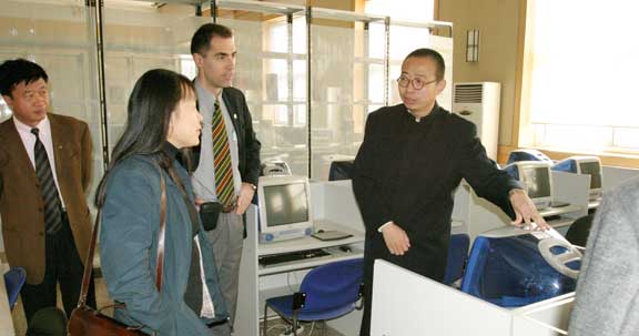 潘鲁生院长在实验室接待了马意孚博士。在实验室马意孚博士兴致勃勃地参观了各个工作车间和学生自己设计的各种作品并与学生进行了交谈。