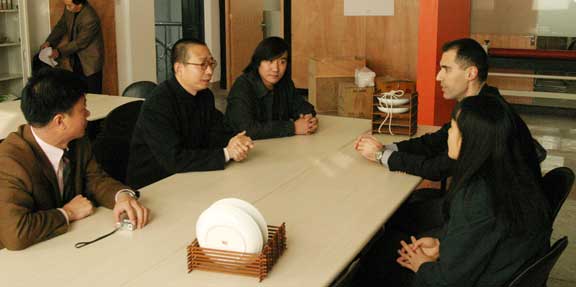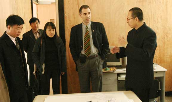 潘鲁生院长与马意孚博士就我院新校区太阳能的利用进行了交谈。马意孚博士提出了许多建设性的建议,他认为对太阳能的利用应该把建筑的特点与太阳能的采集结合起来,并具有艺术的特征,在这个问题上四个方面是需要注意的,一是产品的高效,二是艺术设计,三是选用材料的成本,四是周围的环境,把这四个方面有机结合以找出其合理的结合点。