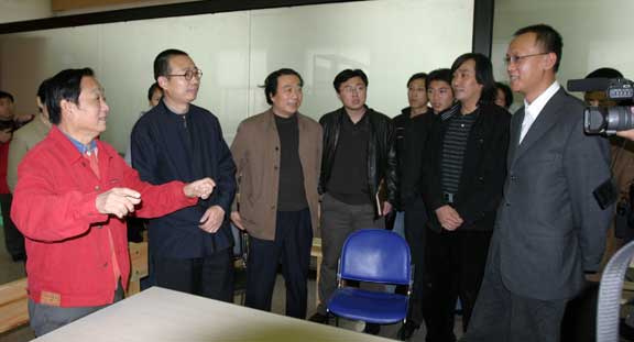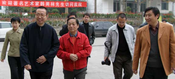 潘鲁生院长、李新副院长,教务处、科研处等部门领导及众多师生热情欢迎韩美林先生的到来。