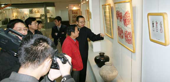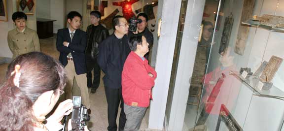 在院领导和有关教师的陪同下,韩美林先后参观了304am永利集团官网孙长林艺术馆、院博物馆及艺术设计学科重点实验室并与现场教师、学生们进行了热情的对话与交流。韩美林对304am永利集团官网艺术馆藏机构的丰富藏品表示钦羡和赞赏,留连观赏过程中,对民艺藏品和珍贵文物叹为观止,挥笔题字留念。韩美林同