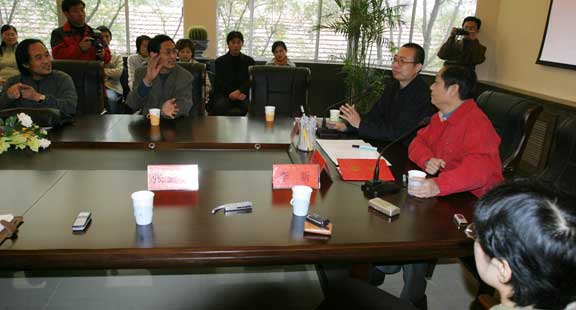 韩美林的艺术人生扎根于深厚的中国大地土壤,百折不回,上下求索,取得了令人瞩目的艺术成就。他同记者、教师、学生代表们就有关问题进行了充分交流。韩美林先生表达了艺术强调个性,不必拘泥于“什么法、什么式”,同时必须扎根民族传统等观点。他畅言快语、挥洒性情,显示出山东人的豪迈性格、岁月磨砺的人世沧桑以及艺术大家的独特气质。现场气氛热烈,不时爆发出畅快、爽朗的笑声。座谈结束后,韩美林与与会师生合影留念。