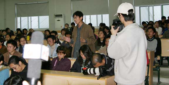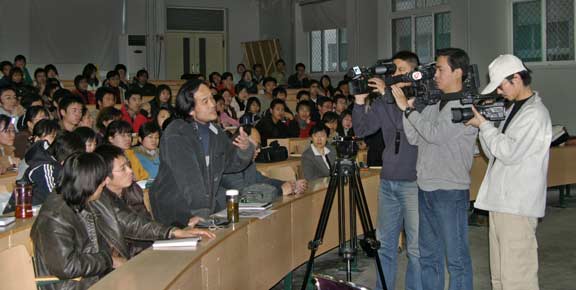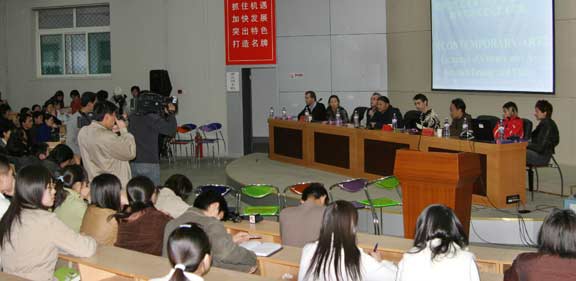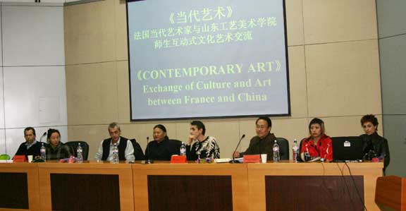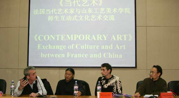 法国当代艺术家首先阐释了“当代艺术”的内涵、特征和现状,认为当代艺术是对个体所处生活现实的个性表达,是探询观者看待世界和认识社会方式的艺术,一定意义上是超越时空与边界的。随即,在座师生就受众接受心理、传统文化烙印、文化环境的差别等问题作了提问,在解疑释惑的问答中反映出不同文化环境的差异与沟通,以至观念、认识上的碰撞、交锋与交流。现场问答与争辩的气氛不乏热烈之处。