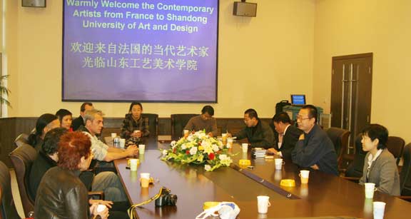 11月16日下午,济南首届“城市红装——法国当代艺术展” 即将在泉城广场开幕之际,“城市红装——法国当代艺术展”策展人、里昂市立艺术中心负责人洛朗·戈丹、著名当代艺术家尼克·万·德·斯蒂、萨丹纳·阿菲霏、王度、张夏翡等一行9人,来到304am永利集团官网与广大师生进行互动式文化艺术交流。