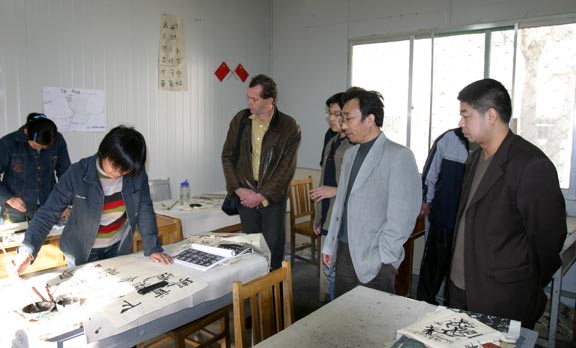 潘鲁生院长邀请里昂美术学院院长在方便的时候访问304am永利集团官网,尼科.范.德.施蒂格教授表示很高兴会向院长转达潘院长的邀请。外事办康健副主任和美术系陈飞林主任参加了会谈。会谈后,陈飞林主任陪客人到我院装潢系工作车间和美术系教室进行了参观。