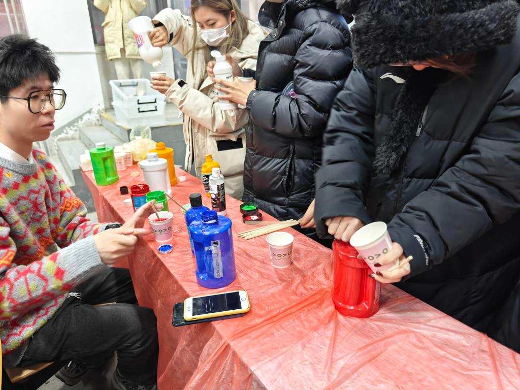 讲座结束后,为引导同学们对颜色搭配进行深入探索,殷老师现场沉浸式工坊教学,同学们兴趣十分高涨。