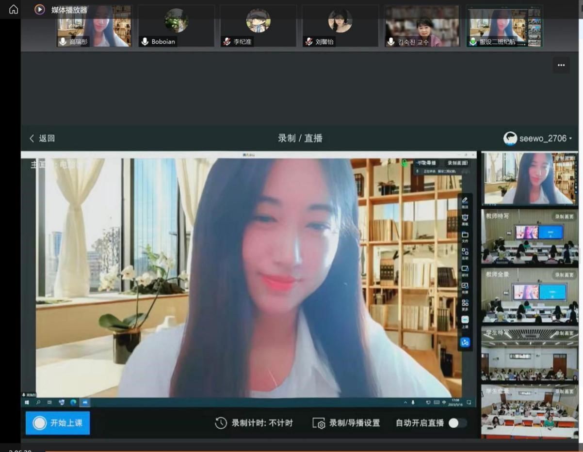 5月16日,服装学院《时装定制设计》、《服装设计程序与方法》中外联合课程外方授课启动,韩国世宗大学金淑辰教授通过线上方式为学生授课。邹渊、杨奇军、刘江南老师全程参与,刘瀛波老师担任翻译,高瑞彤老师辅助外方授课。