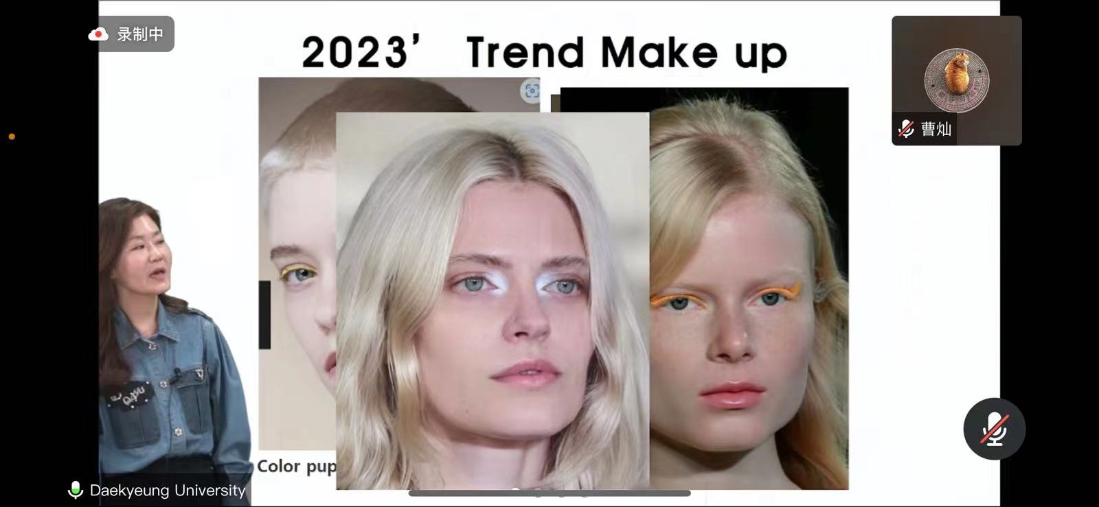 5月10日,韩国大庆大学妆扮专业系主任李京熹教授在线为青岛基地时尚设计学院艺术设计(妆扮)《时尚创意造型》《基础化妆》课程进行专题讲座。时尚设计学院教师赵炜璐、陈泠杉、曹灿全程参与,韩方侯丽兰老师合作辅助教学。