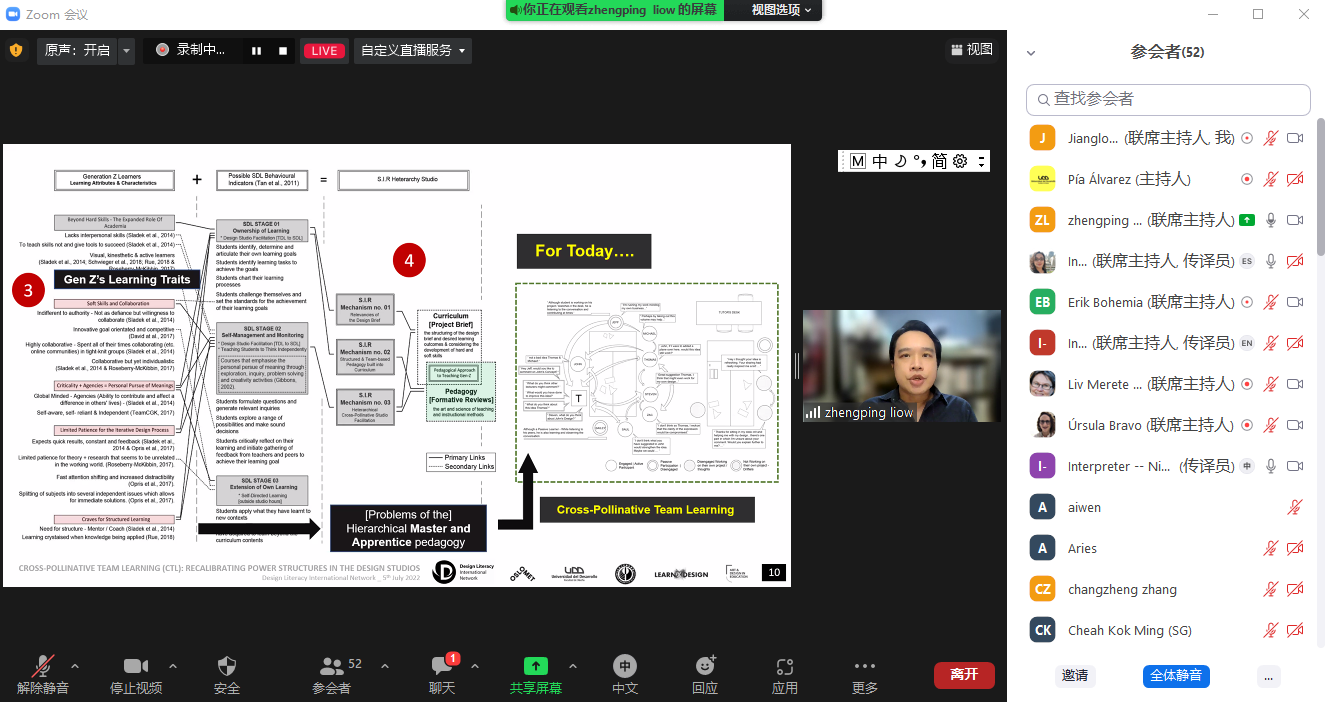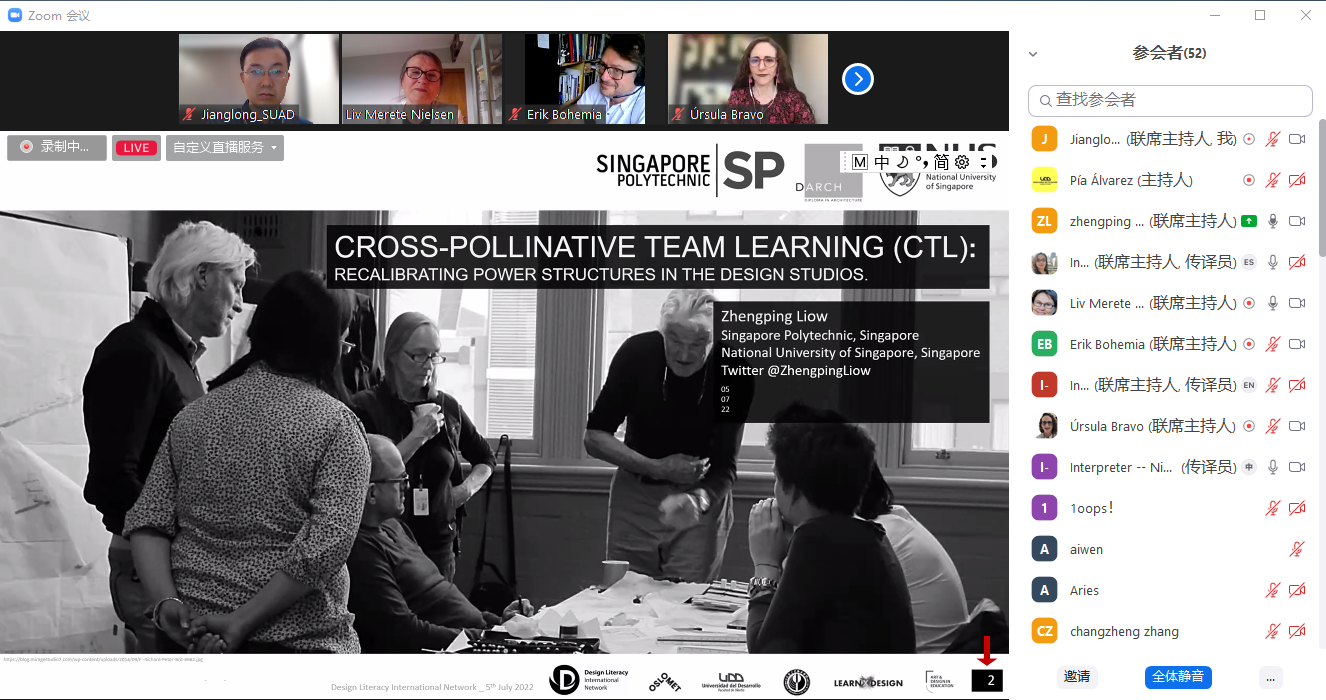7月5日晚,国际交流合作处邀请新加坡理工学院建筑专业讲师Zhengping Liow线上举办“‘交叉传粉’团队学习:设计工作室中权力结构的重新调整”(Cross-pollinative Team Learning (CTL): Recalibrating Power Structures in the Design Studios)主题学术讲座。永利官网设计教育研究中心主任Erik Bohemia教授主持活动,全校50余名师生参加讲座。