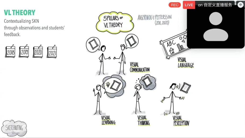 Verena从自己学习视觉笔记的经历开始,阐述了视觉笔记对于激发学生创造力的重要作用。她认为,视觉笔记作为一种记录方法,可以通过提高学生的观察、倾听和可视化技能来促进视觉读写能力的培养,从而提高学生创造性解决问题的能力。Verena还以详实的案例生动地向参加讲座人员展示了如何使用视觉笔记。
