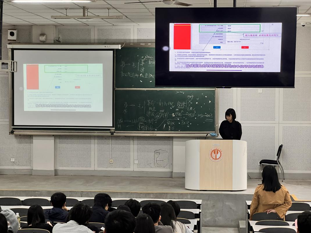 团总支书记陈瑶为毕业生详细讲解了团组织关系转出的关键时间节点和注意事项,并结合我院往届毕业生就业情况,为大家分析了2023届毕业生就业面临的机遇与挑战,鼓励学生打开思路、大胆尝试,积极做到“先就业、再择业”。