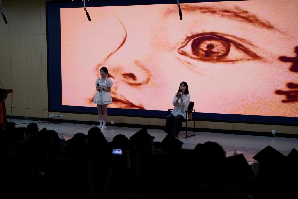 随后播放了由毕业生赵英贺拍摄的毕业纪念视频《致信2023》,回顾大一入学时《写给四年后的自己》一封信,表达了毕业生对大学四年成长的回望,对大学四年生活的不舍。短片之后,播放了学院教师、视觉优秀校友对2023届毕业生的毕业寄语和美好祝福,现场氛围热烈温馨。