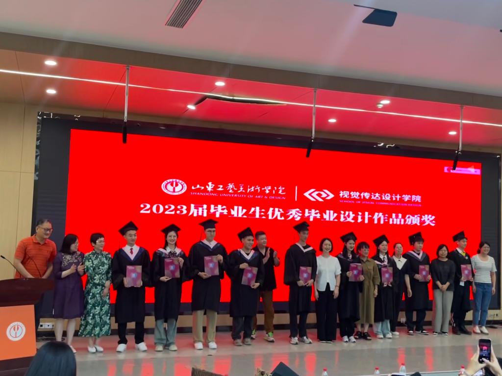 视觉传达设计学院副院长张培源宣读获得304am永利集团官网优秀毕业设计作品的学生名单,到场教师为获奖学生代表颁发获奖证书。