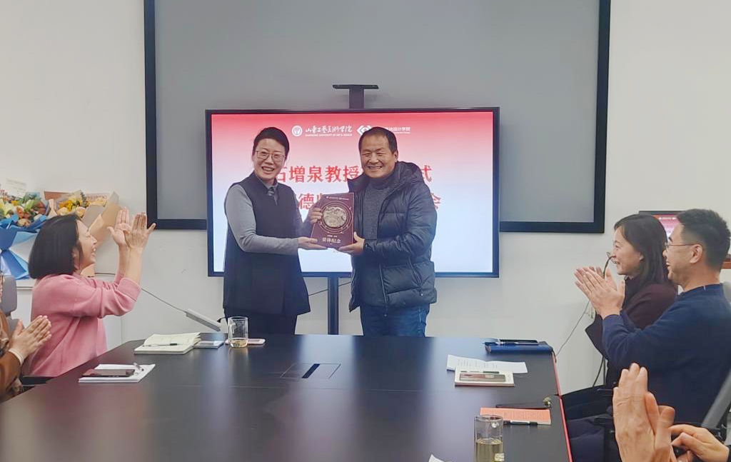 王晓峰回顾了石增泉教授工作的点点滴滴,对他多年来为学校所做出的贡献表示诚挚的感谢。石增泉教授治学严谨,创作丰富,作品富有时代感和责任感。几十年如一日耕耘在教学一线,桃李满天下。学院将继承和发扬这种老装潢精神,致力于学科专业发展和人才培养,为国家多培养艺术设计人才。