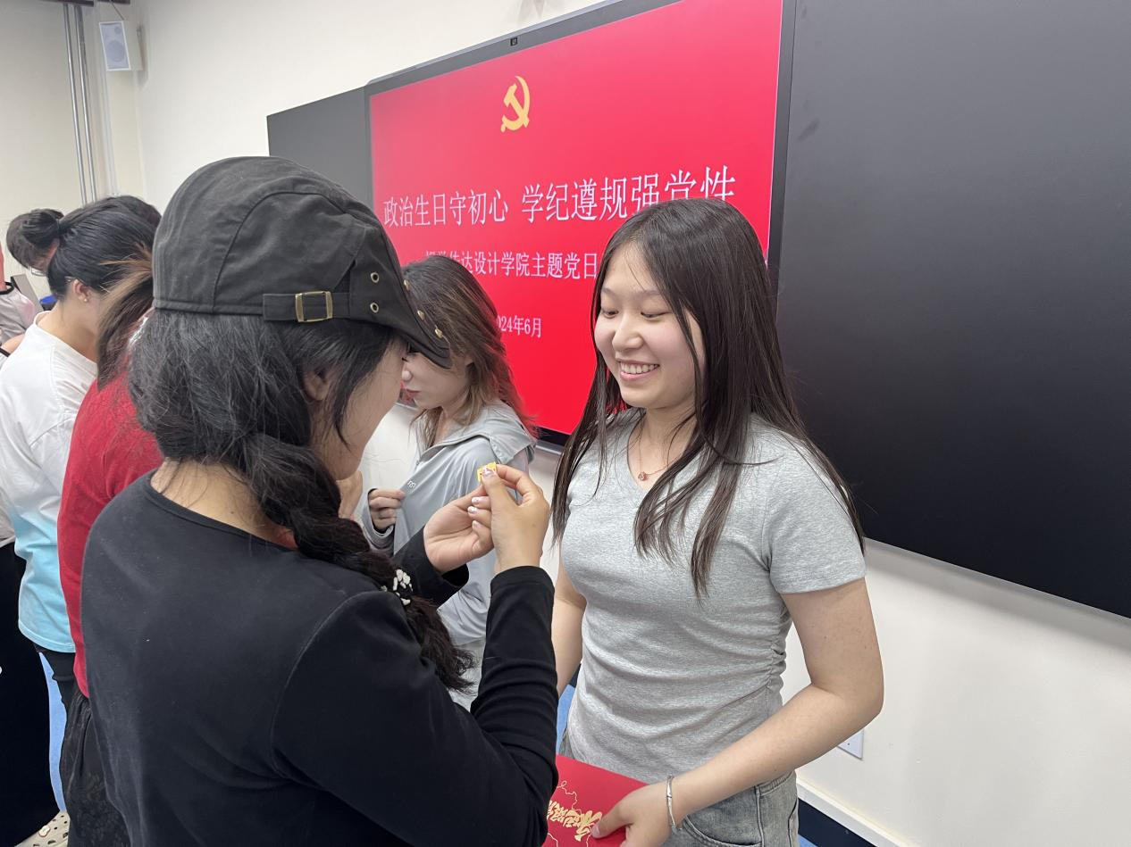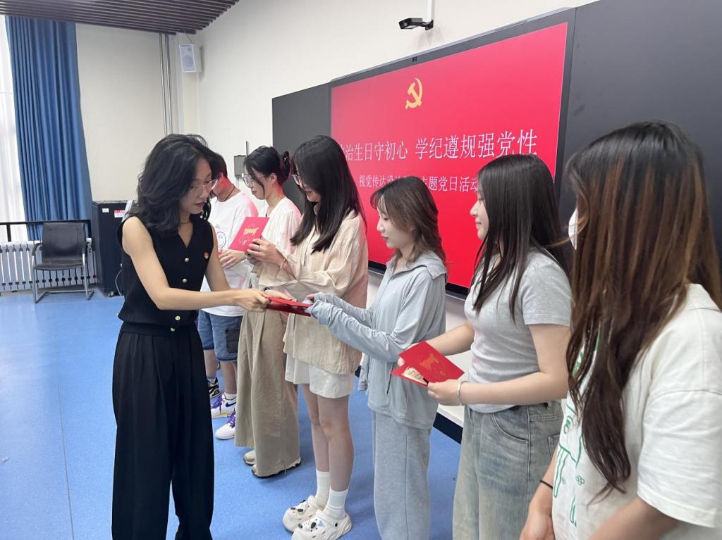 活动第二个环节,由学生第二党支部书记陈瑶为本次转正的8位学生党员赠送政治生日贺卡。