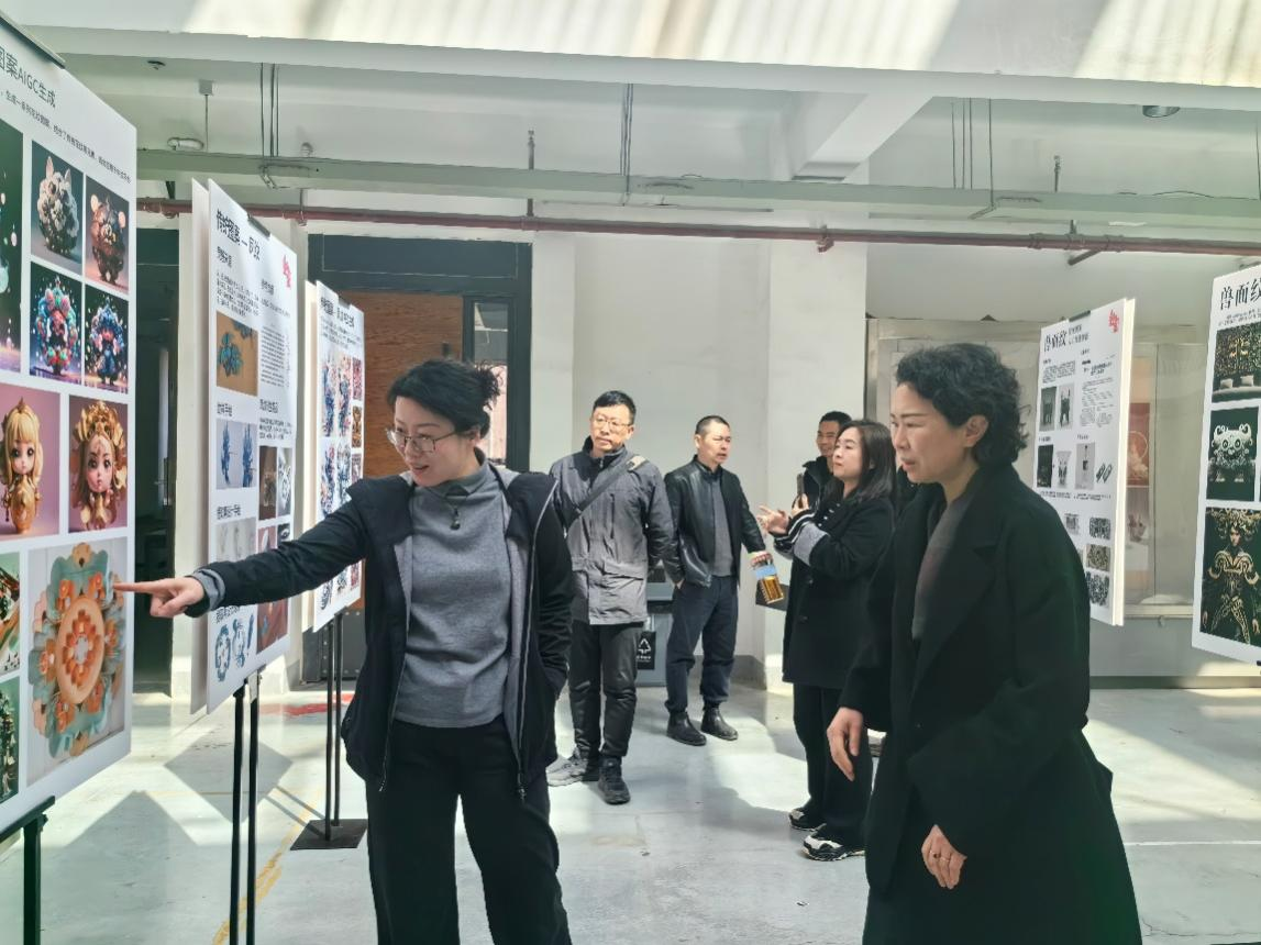 会后,女子学院艺术设计学院赵月院长一行参观了视觉传达设计学院2022级《传统图案》“智绘传承——AIGC重构传统纹样”课程汇报展。