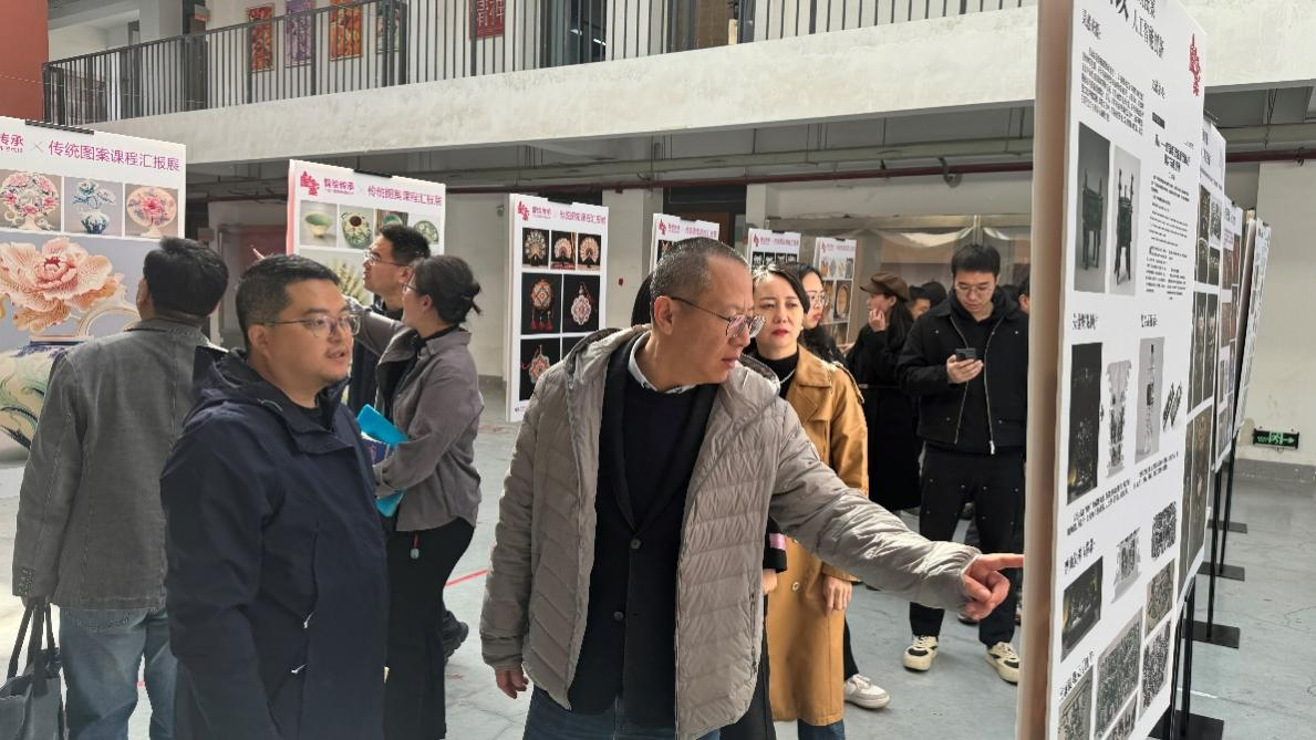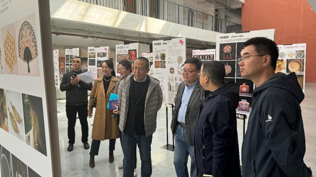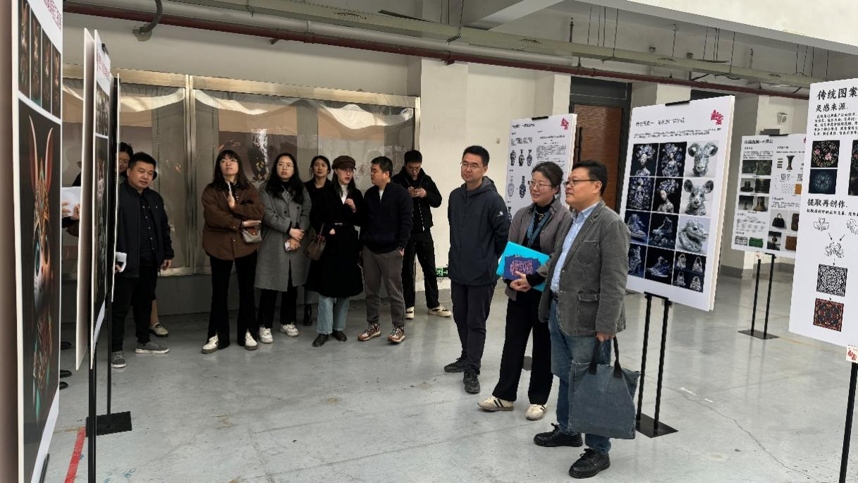 3月19日上午,视觉传达设计学院2022级《传统图案》“智绘传承——AIGC重构传统纹样”课程汇报展开展。教务处处长顾群业教授、山东农业工程学院艺术学院副院长安明明一行十四人观展。视觉传达设计学院院长王晓峰、党总支书记林波陪同参观。