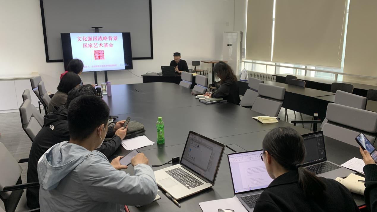 3月31日,视觉传达设计学院邀请山东师范大学美术学院聂劲权教授举办《文化强国战略背景下的国家艺术基金》专题讲座。院长王晓峰主持讲座,视觉传达设计学院教师代表参加讲座。