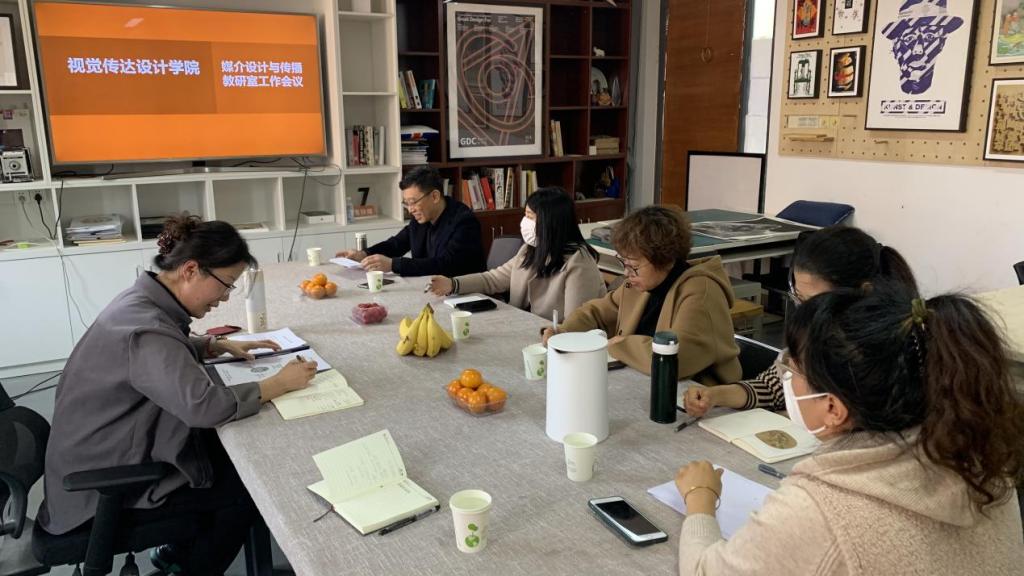 各教研室围绕现阶段教学动态、课程进度、教学管理、科研教研等常态教学管理工作展开汇报。围绕学校育人特色,各教研室根据其自身专业特性、教学设置情况、教研科研项目,积极讨论育人特色鲜明的专业发展路径。在座谈中,各专业教师纷纷表示要树立科研创新为主责主业的教学发展方向,确立教研融合为主题主线的育人育才根本。不断加强专业育人的内涵深度,强化视觉文化元素的设计转化,提升服务区域发展的社会责任,推进专业发展的高质量建设。