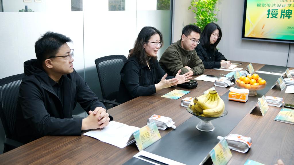 座谈期间,王晓峰详细介绍了学院相关情况,包括专业设置、人才培养、学生就业、科研项目等。她希望立足产教融合与社会服务,值此契机,打造校企合作联合体,通过项目合作、课程合作等,整合双方资源优势,让学生尽可能早些进入创作实习阶段,全面提升学生创作能力与水平,让学生走出学校即身怀绝技,成为可用之才。