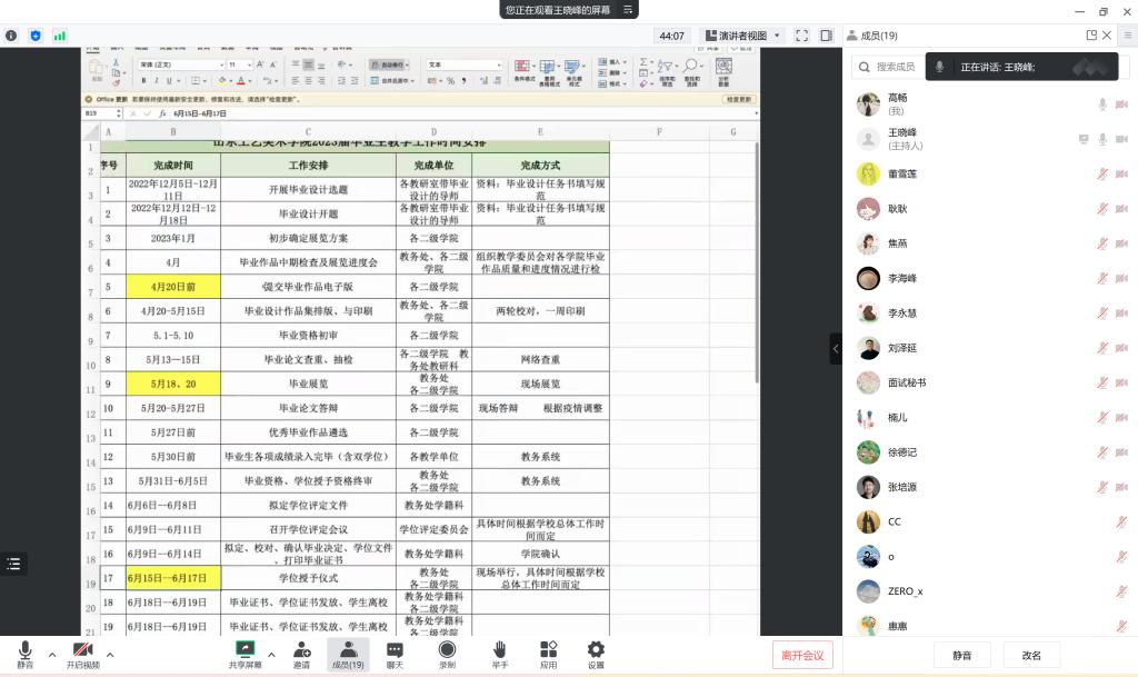 视觉传达设计学院各工作室毕业班导师、毕业班辅导员、教学秘书等参加会议。