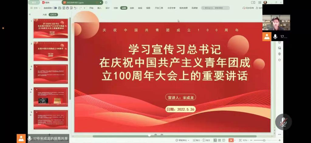 5月26日下午,学生党员宋成龙以线上形式面向2019级二工团支部同学开展宣讲