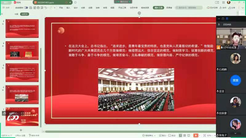 5月25日、26日,视觉传达设计学院学生党员彭逸飞、姜傲迪、宋成龙、王浩宇、张亚等同学作为大学生党员宣讲团成员,深入2019级、2020级对接团支部,开展专题宣讲,带领青年团员共同学习 习近平总书记在庆祝中国共产主义青年团成立100周年大会上的重要讲话精神,结合学习、生活谈感想收获。