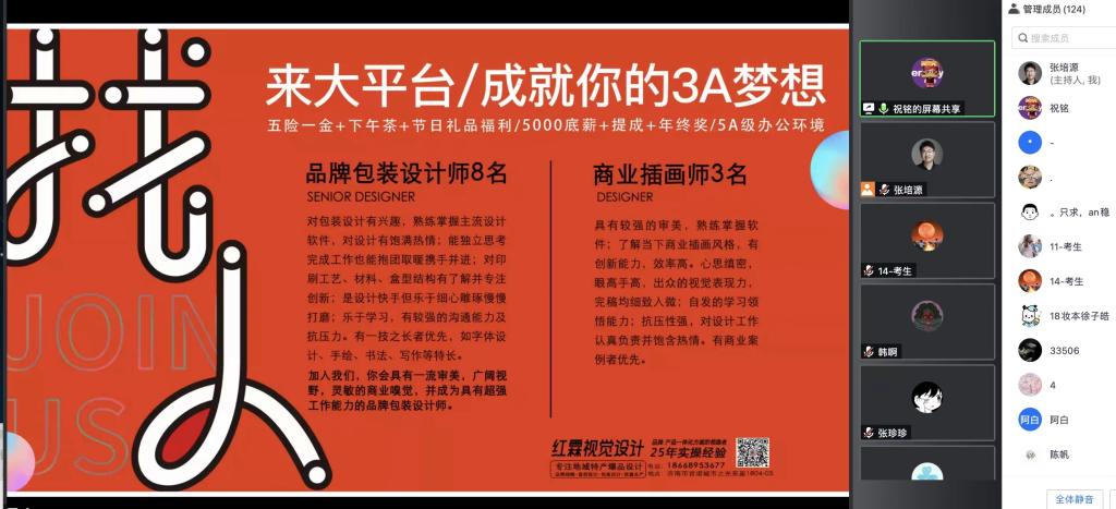 为切实推进2022届毕业生就业工作,为毕业生提供更多优质、对口的工作岗位,视觉传达设计学院提前谋划、及早部署、形成合力,于4月19日举办“视介 — 视觉传达设计学院2022届毕业生云推介”活动。副院长张培源主持推介活动。