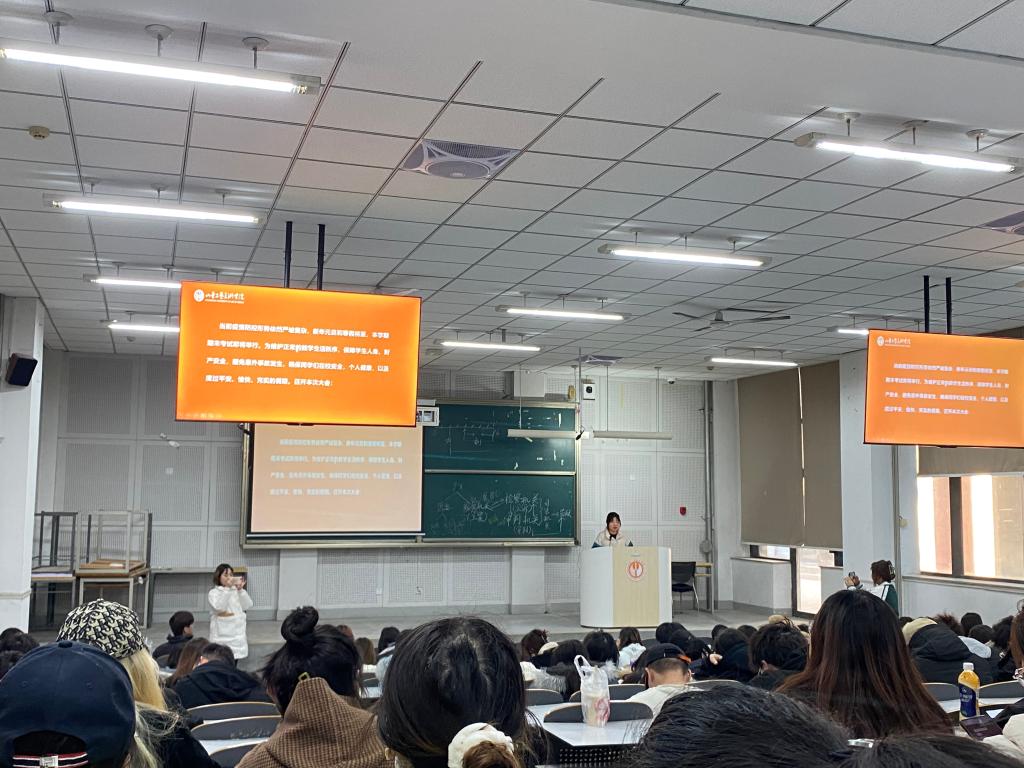 此后,会议围绕“诚实守信,严于律己”考风考纪专题展开。辅导员老师强调了考风考纪的问题,告知同学们考试纪律,并重点说明要严于律己,不可做违纪的事情,并且说明了后果的严重性。提醒同学们要做好充分的复习和准备,正确对待考试,在考场上不违纪,诚实守信,严于律己。
