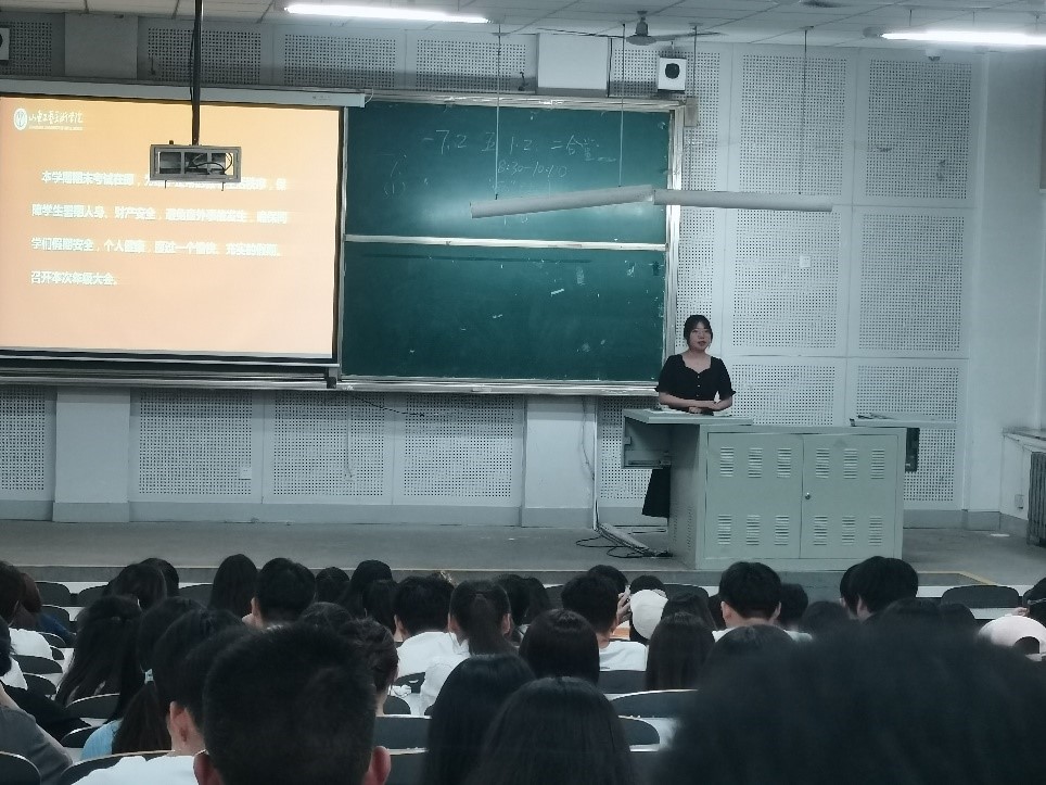 年级大会主要围绕“诚信考试,假期安全”展开。两位老师首先带领同学们回顾了本学期的学习生活,并对请销假管理、宿舍安全卫生问题、个人身心健康等方面提出了相应要求。大会强调了考风考纪,宣读了《304am永利集团官网学生考试违规处理细则》的要点,指出了加强考风考纪建设的重要性,要求学生们诚实守信,文明应考。随后两位老师对学生们进行假期安全教育,强调了假期离校安全、交通安全、出行安全、饮食安全,并向大家讲解了防溺水、防诈骗、防传销等常用知识,提醒同学们提高防范意识,注意人身财产安全。告知同学们暑假放假时间,提醒同学们离校前一定打扫好宿舍卫生,重视安全问题,人走断电,做到文明安全离校,并根据学校安排告知同学们20级宿舍调整的详情。另外,辅导员老师对于2019级与2020级的同学说明暑期社会实践的相关事宜,要求同学们根据 “永远跟党走 奋进新时代”的活动主题,就近就便,确保安全,线上线下,务求实效的积极参与社会实践活动。最后,两位老师为同学们送上假期祝福,祝同学们度过一个充实愉快的假期。