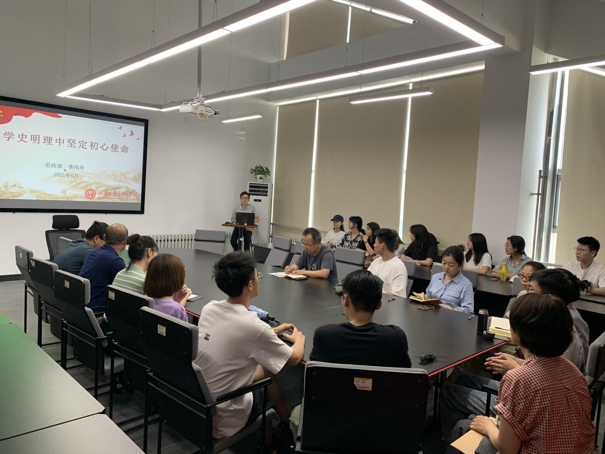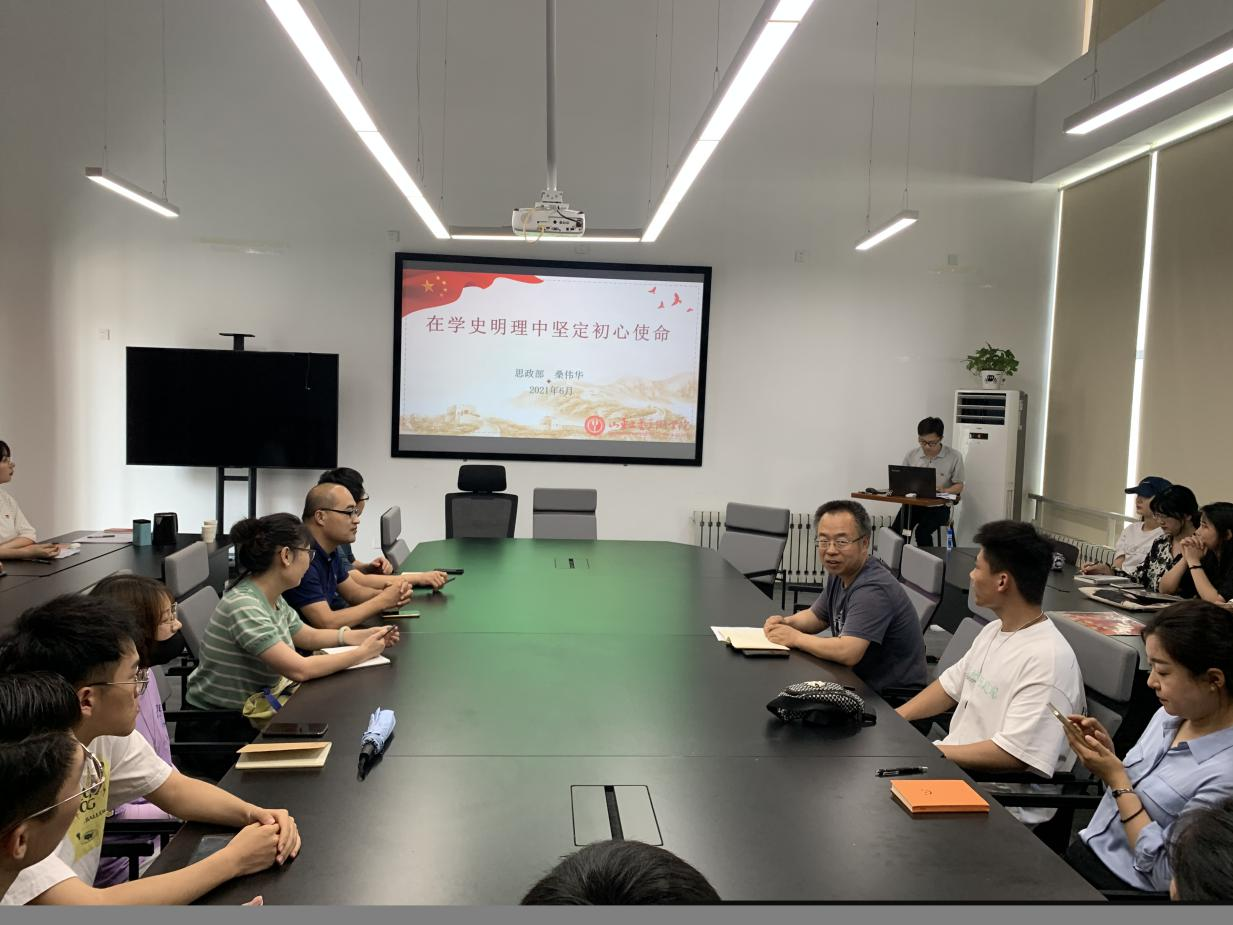 2021年6月22日上午,学校党史学习教育宣讲团成员,思想政治理论教研部桑伟华老师来到视觉传达设计学院进行党史学习教育宣讲,全体师生党员认真聆听了《在学史明理中坚定初心使命》讲座。
