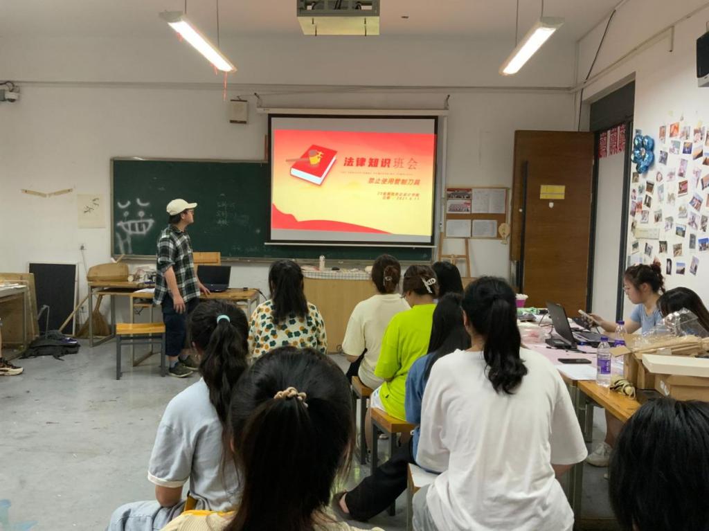 为切实保障广大师生人身安全,维护学校正常教育教学秩序,有效防范校园内各类伤害师生事件。根据山东省教育厅关于深入开展严禁管制刀具等危险品进入校园的专项治理工作的通知要求,视觉传达设计学院于2021年6月11晚,组织各班开展“严禁管制刀具等危险品进入校园”主题班会(主题团日活动)。