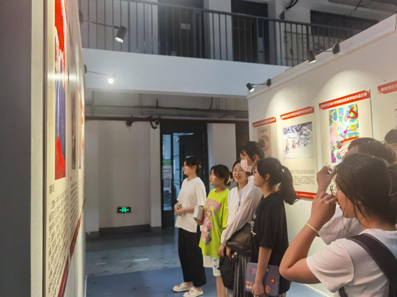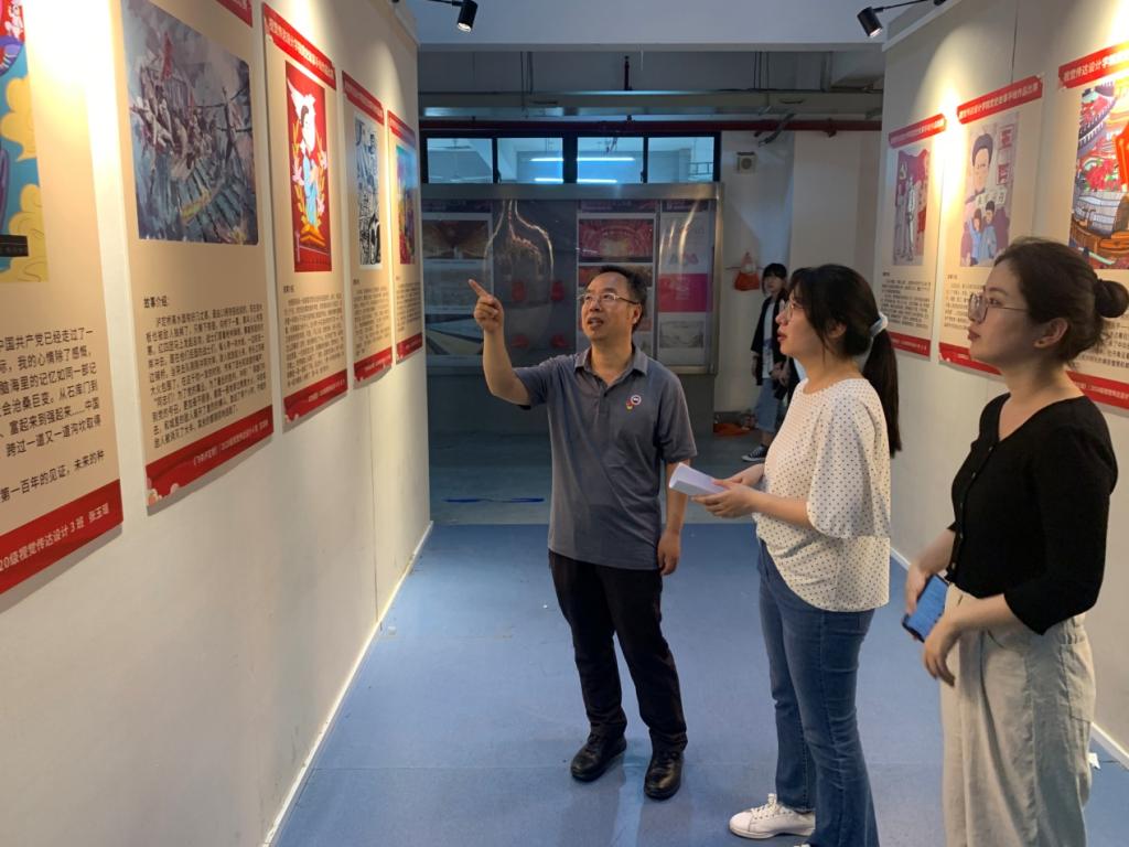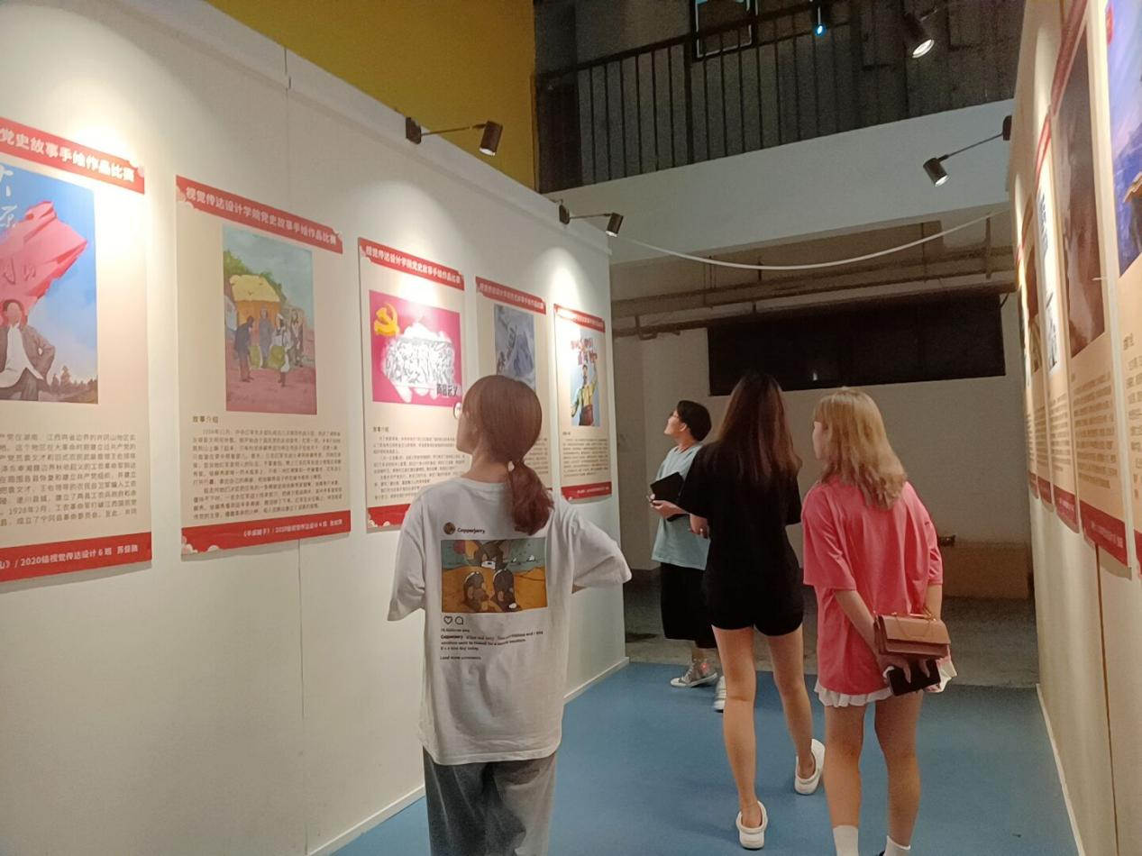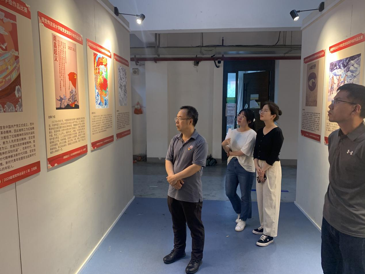 2021年6月17日下午,视觉传达设计学院党史故事手绘大赛作品展在教学楼展厅正式开展。党总支书记吴焕文,团总支副书记陈瑶,辅导员王敏、朱晓晨、高畅与同学们共同参观党史故事手绘大赛作品展。