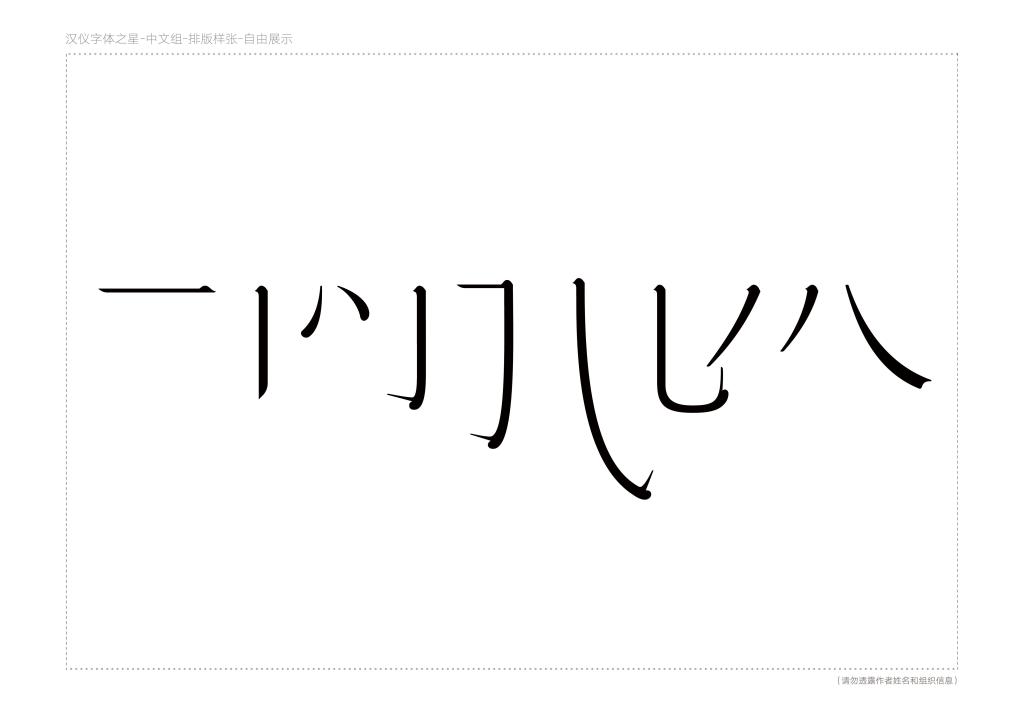 鸟海修(二等奖):这是一款超细的长体宋体字。其修长而美丽的骨架形态给人一种风度优雅而清净的感觉。一个一个的笔形都经过认真考虑和整理,给人以好感。要是再提高要求,可能再稍微把数码感削弱一点会更好。
