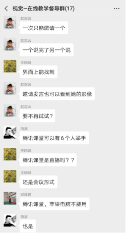 教师:灵活准备,认真敬业。良好的线上教学效果离不开教师的辛勤付出。在未正式上课前,老师们自发组织学生建立课程联络群,提前沟通学习用到的教学平台,并先后多次测试上课效果。为了保证最好的教学质量。老师们认真负责,积极响应,在极短的时间内高质量准备了教学课件、视频、音频、文档等资料,确保了“停课不停教、停课不停学”。在试讲中,学习平台可能存在无法登陆、直播过程不流畅、网络不稳定等问题,老师们可谓“各显神通”,采取灵活的应对方法,调整教学平台的转换,力争课程不断线。赵志云老师同时学习掌握了多种网络直播平台的使用方法,她在会议讨论时间里,帮助线上教学技术有问题的老师解答了线上点名、线上填表、演示ppt等问题。