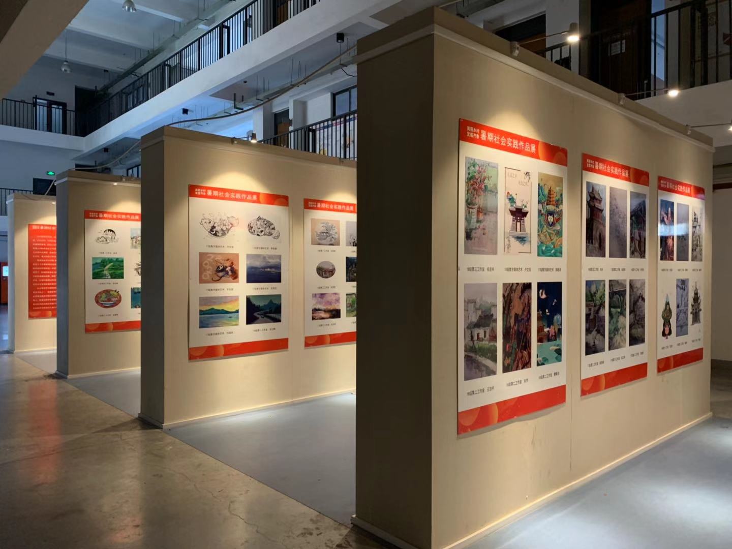 本次展览入选作品138份,展览设计制作全部由同学们自行完成。结合主题展览内容,学院党总支也积极发动社会实践先进个人、获奖学生举办创作交流会,激发广大在校学生爱校、爱国、爱家乡的情感共鸣。