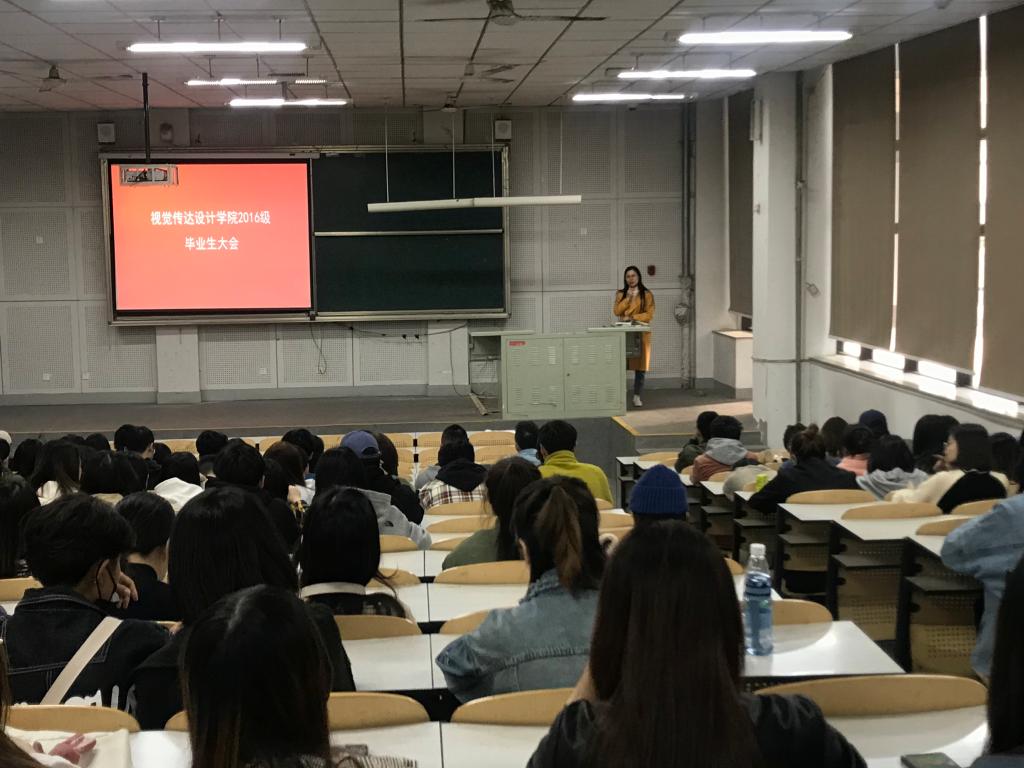 10月17日下午,视觉传达设计学院在办公楼六合堂召开了2016级毕业生大会,会议由辅导员刘阳主持。