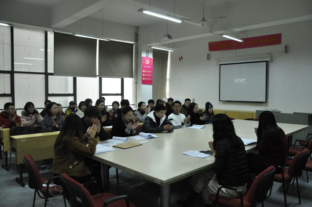 2018年12月25日,视觉传达设计学院学生党支部在三楼多媒体教室召开预备党员转正大会,会议由学生第二党支部书记陈瑶主持,视觉传达设计学院第一党支部书记刘阳、学生支部成员参加会议。