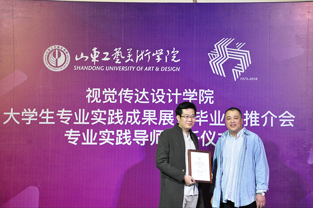 值45周年校庆之际,10月25日,视觉传达设计学院“专业实践导师受聘仪式”在教学楼一楼西侧展厅隆重举行。视觉传达设计学院院长孙大刚、书记吴焕文、副院长王晓峰、副书记刘爱民、学院教授李新君、李宏伟、李光、赵芳延、隋元鹏等及各工作室教师代表、来自社会各界的20余名校友出席了本次受聘仪式,仪式由党总支书记吴焕文主持。