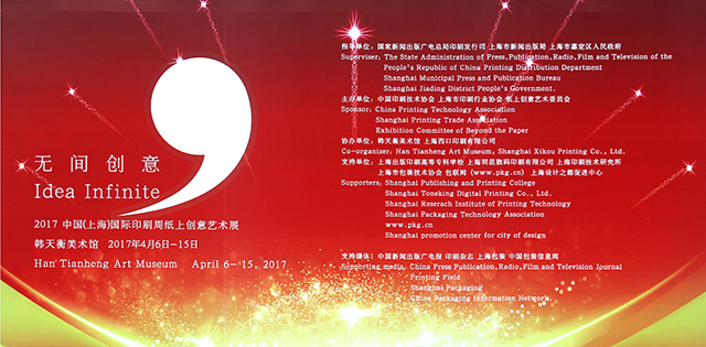 4月6-15日,“2017纸上·至上”暨2017中国(上海)国际印刷周纸上创意艺术展在上海韩天衡美术馆展出。展览由中国(上海)国际印刷周纸上创意艺术展由国家新闻出版广电总局印刷发行司、上海市新闻出版局指导,中国印刷技术协会和上海市印刷行业协会共同主办。展览旨在展现最新技术与印刷业融合的最新成果,促进印刷业从传统加工制造业向先进制造业转型;展示装帧设计的原创作品和包装创意产品,推进印刷企业与文化创意产业、信息服务产业的融合。