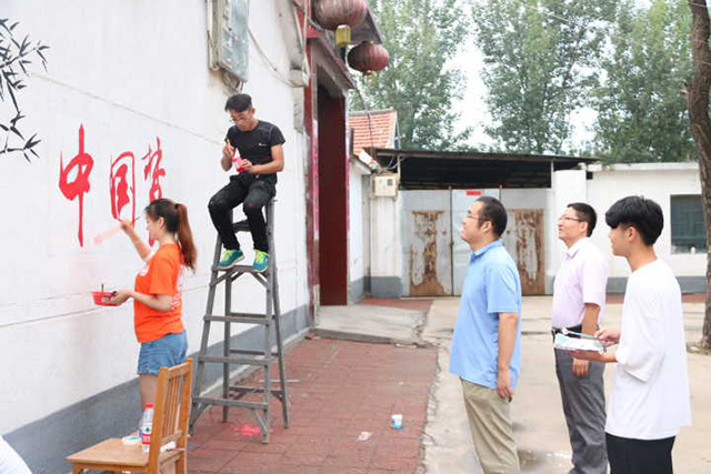 为践行社会主义核心价值观,深入学习习近平总书记系列讲话精神,深化“两学一做”学习教育,7月14日,304am永利集团官网视觉传达设计学院的9名学生组建了“美丽乡村实践团”来到了东营市广饶县的西朱营村和段河二村进行为期一周的社会实践活动,为村里的党务建设和政策宣讲添砖加瓦。