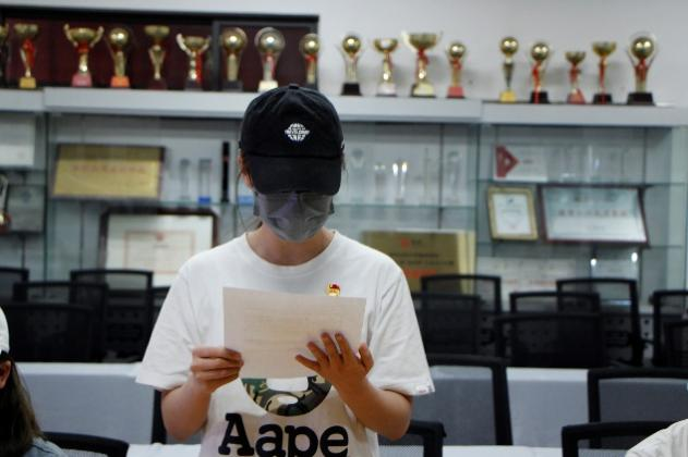 优秀团员代表王钰和新团员代表徐梦冉发言。王钰说:“希望新入团的同学跟随时代步伐,展现青年担当、严格要求自己,遵守团的纪律,虚心学习,展现青年风采,不负青春韶华。”
