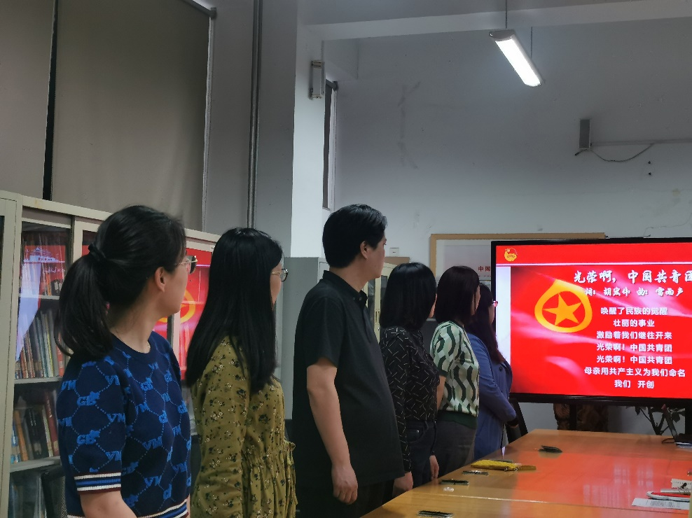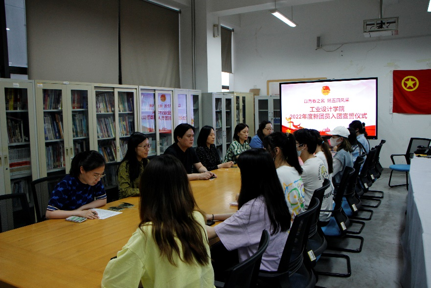 2022年是中国共青团建团100周年,时光不老,青春正好。为了团结带领工业青年传承五四精神,推进学院团建工作与专业建设双融合、双促进,工业设计学院团总支在多媒体教室举行“以青春之名扬五四风采”主题教育实践活动暨新团员入团宣誓仪式。工业设计学院院长张焱、党总支副书记韩丽达、团总支副书记徐帅、产品教研室主任王艳、艺术与科技教研室主任韩卫萍、教师骨干王君秋和新发展团员参加活动。本次活动由徐帅主持。