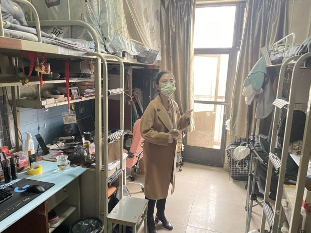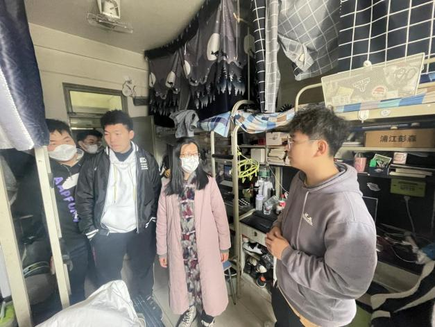 21日上午,各年级辅导员对学生宿舍的整改情况进行了全方位的检查。首先检查了整改问题的落实情况,各宿舍整体状况良好,基本达到整改要求。再次,检查宿舍原来设施能否满足学生的生活需求,排查宿舍瓷砖、桌椅和柜子的安装是否牢固,宿舍水电是否安全,宿舍消防通道是否畅通和阳台有无杂物等。辅导员表示在疫情防控阶段,宿舍卫生安全需要每一个人的努力,必须做实做细,容不得丝毫松懈,学生们纷纷表示支持。