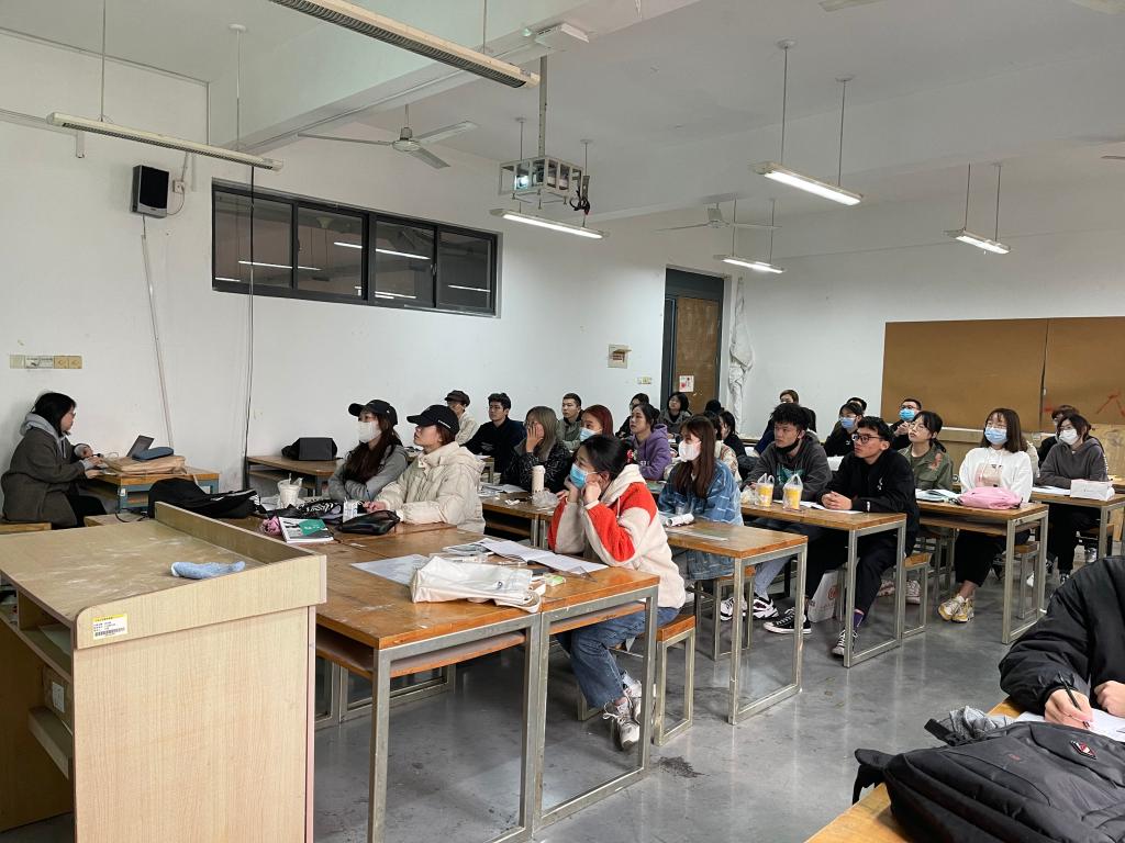 韩文涛旁听了汤超颖老师的设计制图课后,肯定了汤超颖老师的专业水平与教学水平,并就如何提高课堂教学效果作了简短交流。