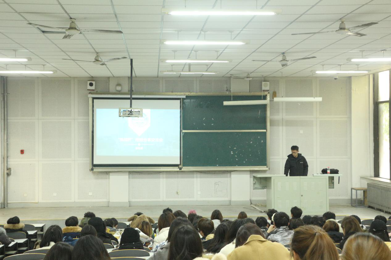 首先,郭胜豪为同学们简单介绍了“挑战杯”竞赛的项目组成。“挑战杯”竞赛分为“挑战杯”全国大学生课外学术科技作品竞赛和中国大学生创业计划竞赛,即俗称的“大挑”和“小挑”。郭胜豪还向同学们介绍了“挑战杯”的参赛流程和时间进度安排,让同学们对此类竞赛有了一个整体上的了解。
