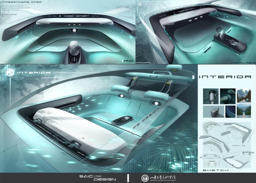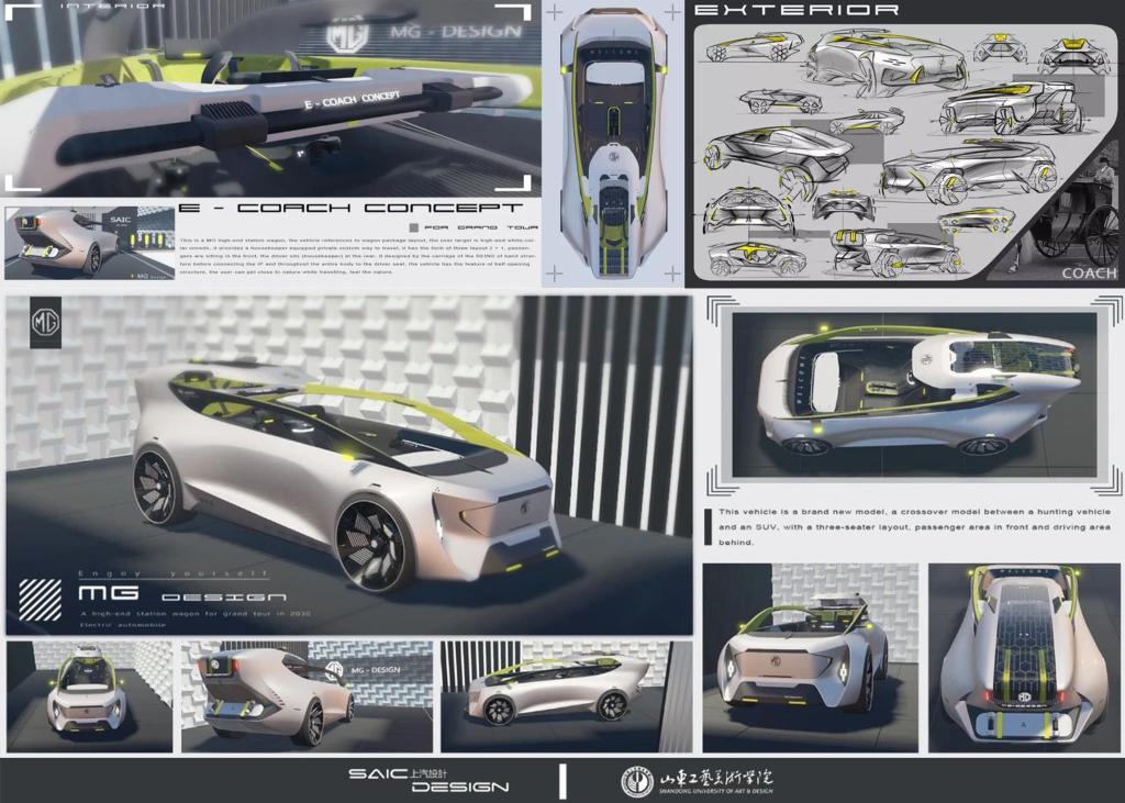 本届赛事以“发现汽车设计的明日之星”为主题,赛事针对上汽集乘用车公司“荣威ROEWE”与“MG名爵”双品牌发布任务书,参赛选手可自由选择荣威“集智新国潮”以及名爵“感性国际范”相关任务书开展设计创作。永利官网汪洋同学在付志伟、王奇光老师的指导下,客服疫情困难积极参赛,设计作品在全国600余件参赛作品中脱颖而出,获得上汽设计评审团与特约跨界专家的高度认可。设计作品名爵高端旅行车,参考马车的布局形式,设计提供一种配备管家、私人定制的出行方式,内饰采用“2+1”的三座布局形式,乘客在前,驾驶者(管家)在后方,由马车的缰绳设计而来的环带结构连接着前驾驶区,贯穿整个车身至后驾驶区座椅。整车为半开放式结构,用户能够在旅行中更好地亲近自然、感受自然;后方驾驶区域相对封闭,前方乘客区相对开放,前驾驶区可以实现前后移动,后驾驶区可切换到自动驾驶模式;方向盘可变身为无人机,驾驶者切换左右手柄即可实现对无人机的操作;外饰的设计整体保留简洁的风格,细节处加以黄色的点缀。整车设计带给人们一种新的布局、新的出行方式、新的生活体验之感,用户定位为高端客户。