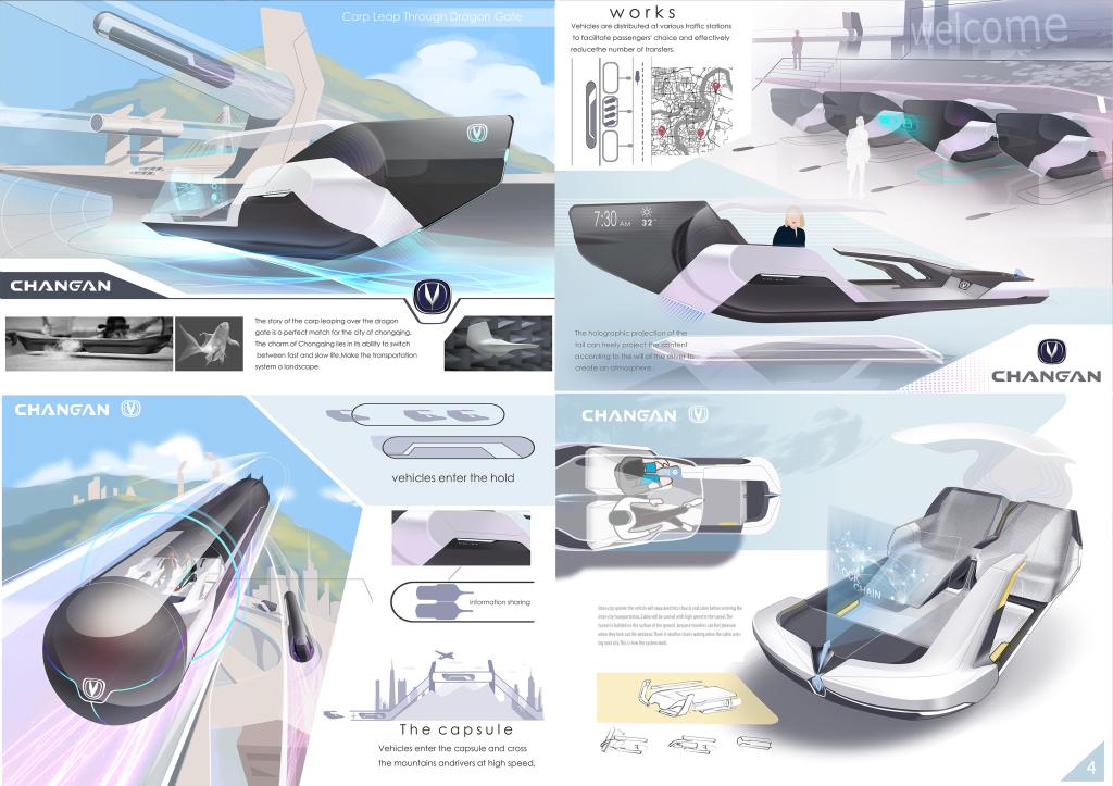 李金纯同学的参赛作品《FordMobileLandscape》,以自动驾驶时代的“移动山水庭院”为设计理念,座舱内利用各种材料和形态,使乘客仿佛置身于山水之间,更加亲近自然的氛围也使行驶中车内的体验更加惬意别致;而旅行停泊时车内和外界能够更好地融合。在形态上,柔和而富有层次的线条和曲面构成了主要的设计语言,形态也同样来自对高山落水的抽象提炼。对于中式设计语言探索与独特的内饰材料搭配相得益彰,共同诠释了“移动山水庭院”的概念。作品获得评委组高度认可,最终获得福特企业设计奖与最具可持续性设计奖。